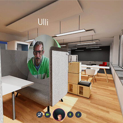 Mit eigener Web Cam, ohne künstlichem Avatar, wohltuend, dass die anderen sich auch im Raum bewegen, mit eigenem Gesicht. Es ist leicht und macht Spaß, auch im Web in die dritte Dimension aufzubrechen. Kreatives Storytelling, informelles Networking oder inspirierende Talks – alles geht, ganz ohne puppenhaftem Avatar.
