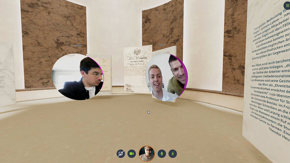 Gutes Storytelling zählt auch hier, die richtige Inszenierung ist wichtig, diesmal in einem digitalen 3D-Raum. Starten wir zunächst in Lernstationen, die uns in das Thema einführen, oder teilen Moderator:innen direkt mit uns ihre Perspektive? Vielleicht beginnen wir auch mit einem Impulsvortrag.